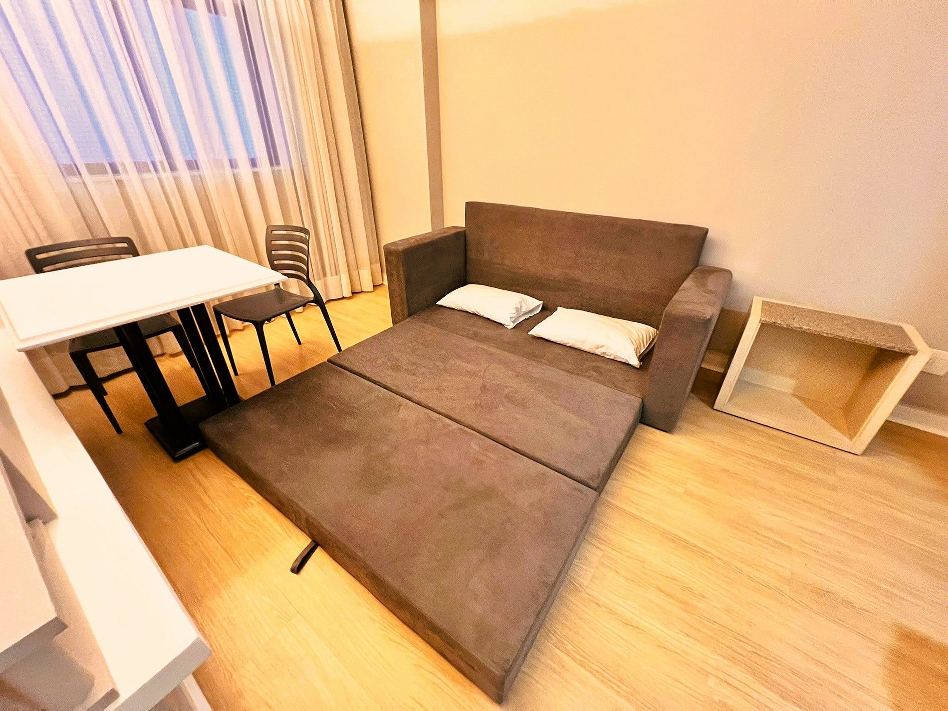 The flat has a queen size bed, which can be separated into two single beds, and a sofa bed. It also has air conditioning (hot/cold), fridge, microwave and basic kitchen utensils. Sheets, towels and blankets are provided. For longer stays, there are cleanings twice a week included. In the building there is a restaurant that serves breakfast, which can even be delivered to the apartment (coffee and delivery charged separately). Free parking for one vehicle per apartment is also included.