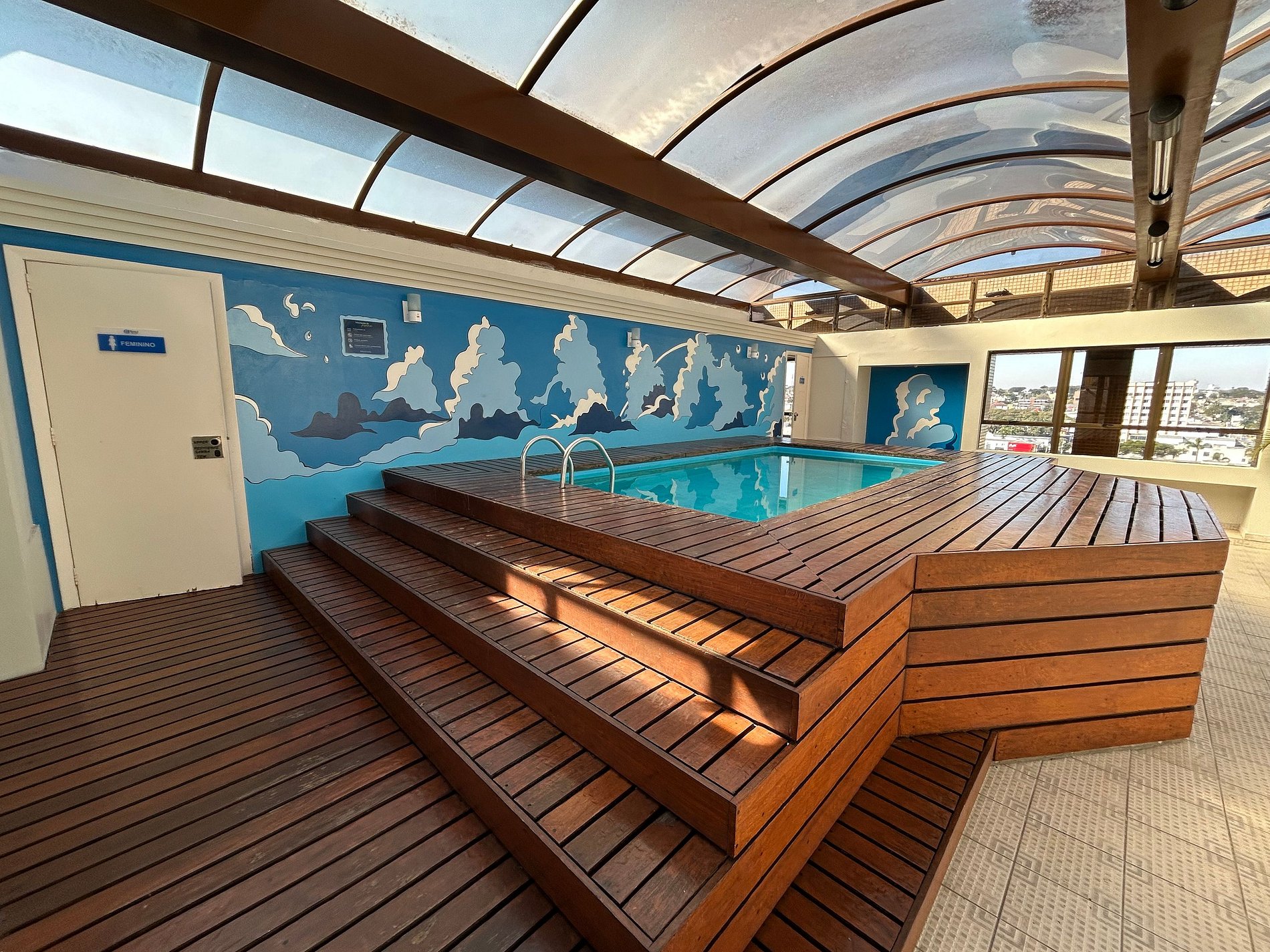 No topo do edifício do Upper (8° andar), estão localizados: piscina, sauna (masculina e feminina), academia, bar e mesa de sinuca. Para acessar essas áreas você vai até o 7° andar de elevador e depois sobe uma escada para acessá-las. A piscina é toda fechada e climatizada, mas não é aquecida. A piscina conta com espreguiçadeiras, tornando o lugar perfeito para relaxar. Em nenhum local do 8° andar é permitido fumar e consumir alimentos e bebidas.