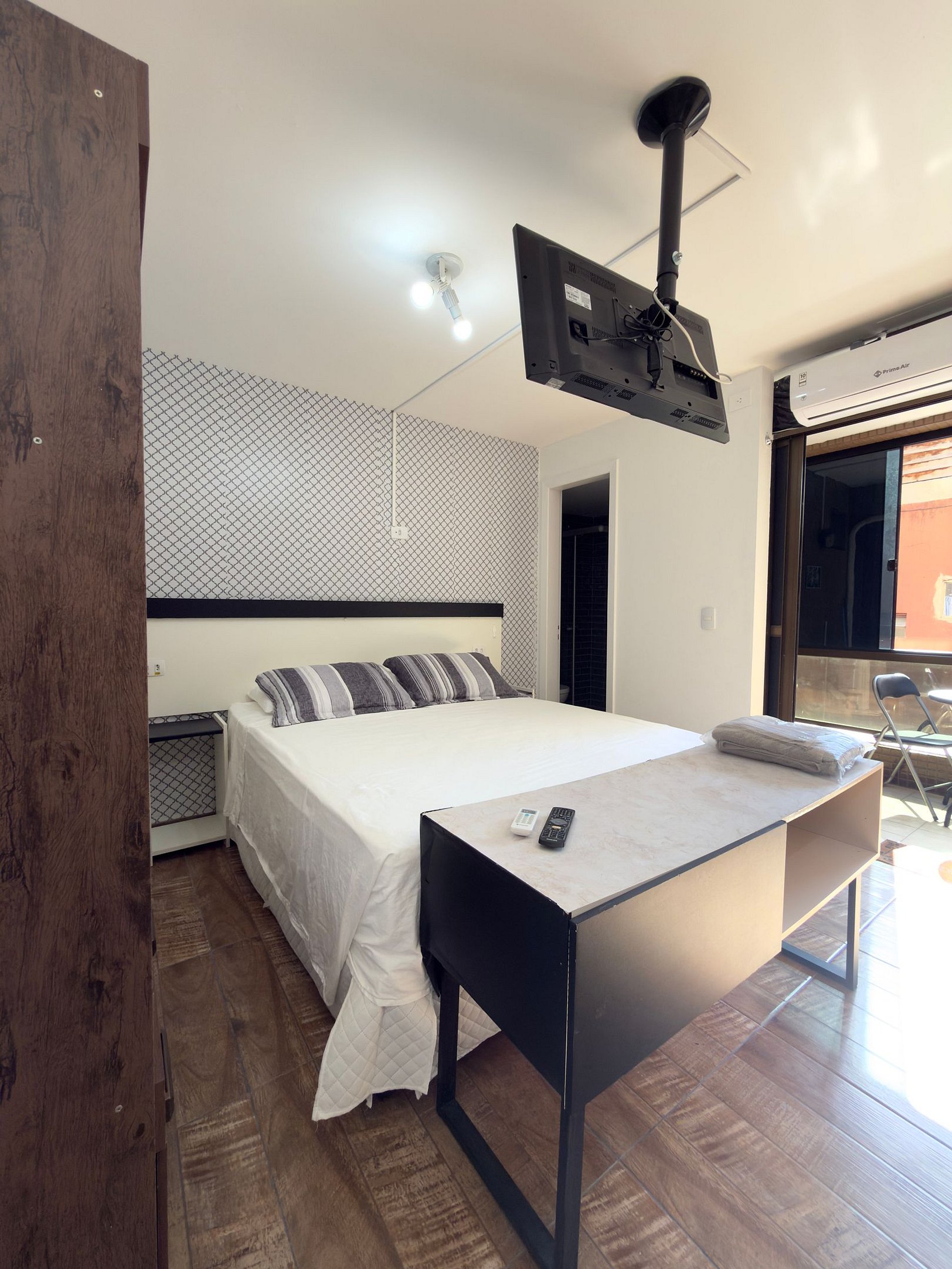 Excelente studio com varanda em ótima região de Curitiba, vizinho ao Centro, com muitos bares, restaurantes, shoppings etc. Fácil acesso a cidade de Pinhais. Apartamento inteiro só para você, sem dividir com ninguém. - Roupa de cama, toalhas e cobertores são fornecidos. Check-in às 15:00 e check-out às 11:00 (horários diferenciados, ver abaixo Descrição/Outras observações).