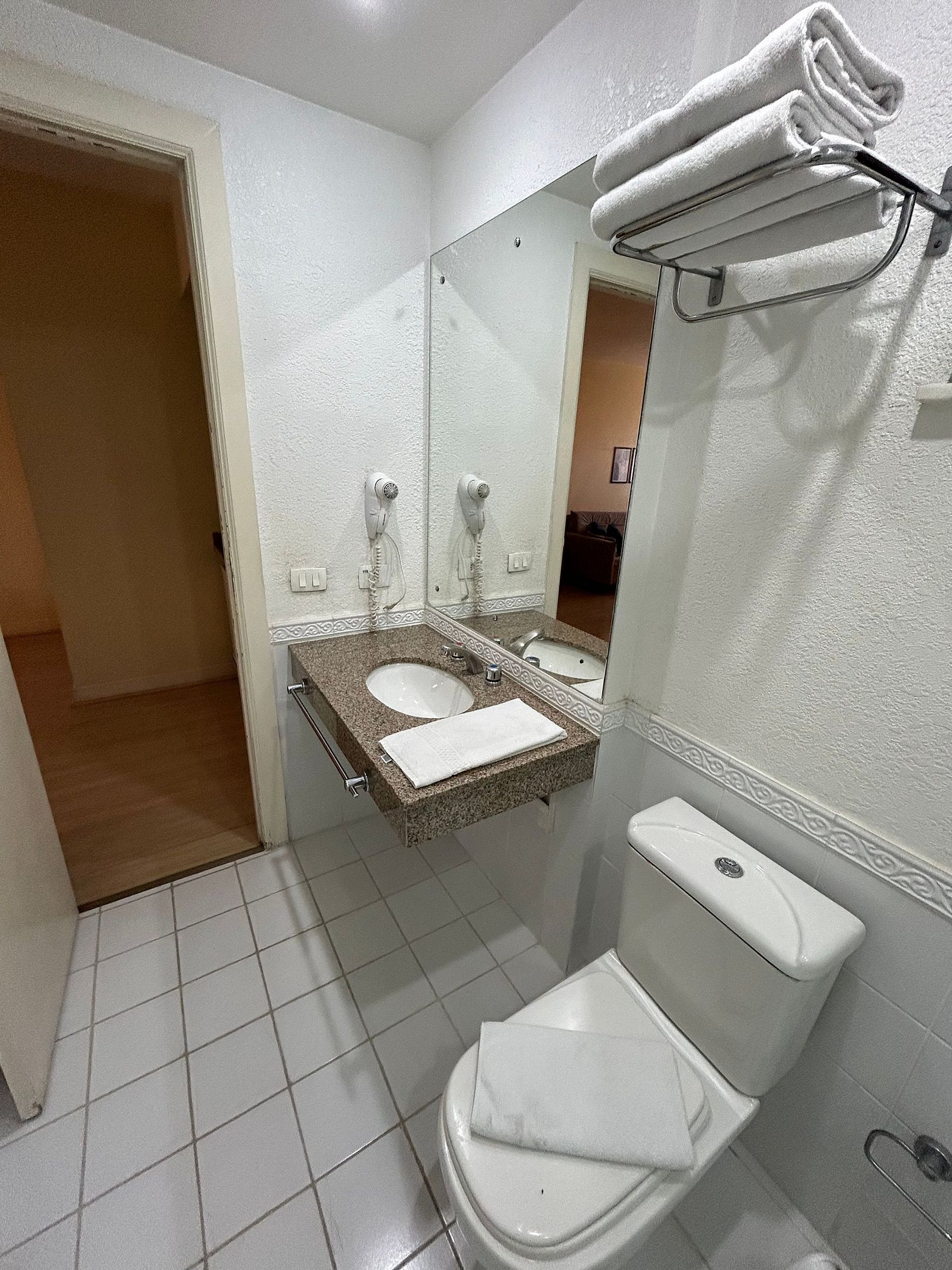Próximo à portaria está o maleiro. Informe o porteiro caso queira utilizá-lo. Nele é possível deixar sua bagagem em segurança caso você tenha algum compromisso e não possa aguardar o horário do check-in ou check-out. No piso da portaria também estão várias mesas e cadeiras que você pode utilizar com seu notebook enquanto aguarda a limpeza do quarto.